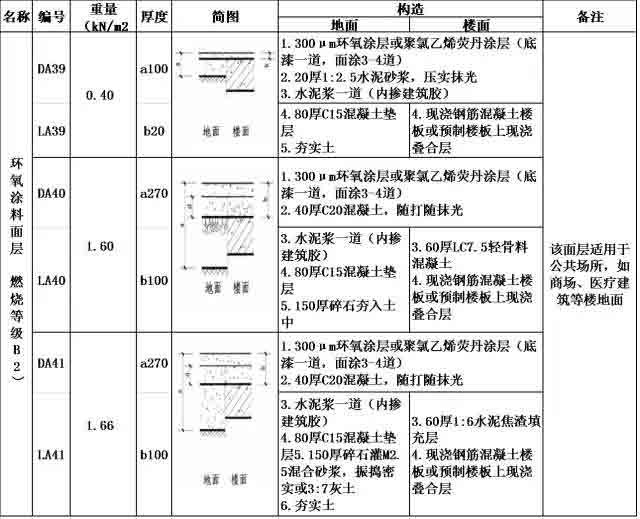 根據(jù)《樓地面建筑構(gòu)造》(12J304)國家建筑標(biāo)準(zhǔn)設(shè)計圖集,A.整體面層樓地面中例如環(huán)氧涂料面層建筑設(shè)計如下: