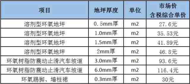 2、環(huán)氧樹脂地坪廠家報價(僅供參考)